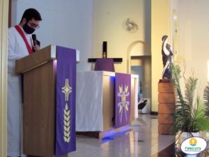 O seminarista Mathaus faz uma breve reflexão sobre as Setes Dores, cada dor significa uma espada que transpassou na alma da Virgem Maria, pois Ela carrega em si uma nobre missão, missão esta de assumir as dores de Seu Amado Filho, e assume também hoje as dores da Igreja e da humanidade, pois aos pés da cruz se torna Mãe de todos os homens e do corpo Místico de Cristo: a Igreja Católica. Que possamos a exemplo da Virgem das Dores à sofrer com paciência e oferecer tudo o que temos e somos, porque bastou a presença de Maria para acalmar Jesus no seu caminho rumo ao calvário.