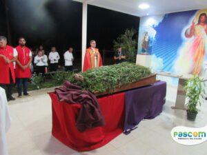 Vivenciamos também o momento de Adoração à Santa Cruz, onde os cristãos um a um, passavam diante da cruz reverenciando e beijando a Santa Cruz, os fiéis foram convidados a subirem em procissão rumo ao Projeto do Santuário, levando o Cristo morto, onde o Seminarista Tharles Brandão nos trouxe a meditação das 7 palavras de Jesus Cristo na Cruz antes de sua morte, por suas feridas, por suas chagas fomos curados, que possamos pensar no grande amor de Deus para conosco e procurarmos levar esse dia adiante nas nossas vidas, rezando mais, perdoando mais, fazendo penitências e jamais nos esquecer que eterna é a sua misericórdia, olhou para nós se esvaziou e se entregou naquela Cruz por toda a humanidade.