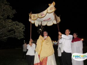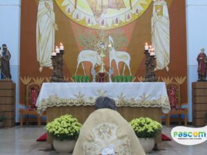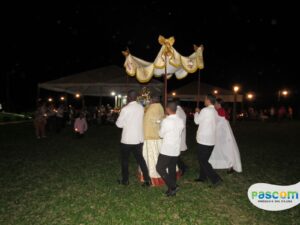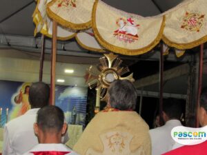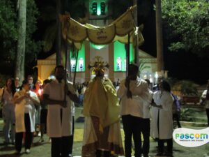 Neste dia importante para todos fiéis católicos, a Santa Missa teve inicio as 17h e logo após a procissão com Santíssimo Sacramento rumo ao Projeto Santuário Jesus Misericordioso, onde houve a benção Solene do Santíssimo Sacramento.