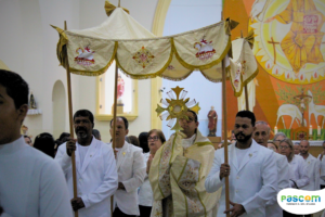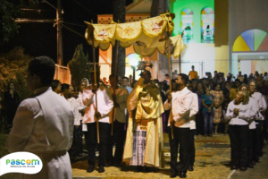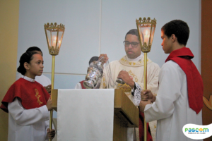 Nesta quinta-feira(30) foi celebrada a solenidade de Corpus Christi, solenidade esta que comemora o Santíssimo Sacramento da Eucaristia. Nesta festa, fiéis agradecem e louvam a Deus pelo inestimável dom da Eucaristia, onde o próprio Senhor se faz presente como alimento e remédio de nossa alma. Nela está contido todo o tesouro espiritual da Igreja, o próprio Cristo.