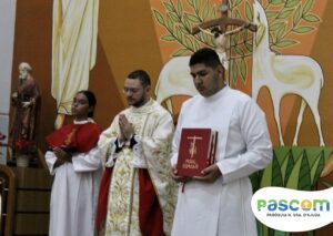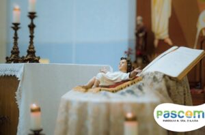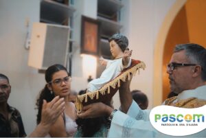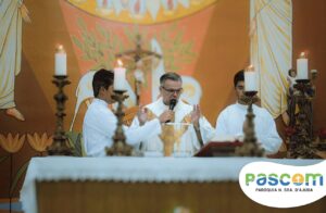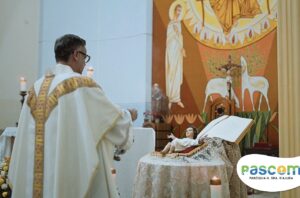 Padre Kayo: “No princípio era o verbo, o verbo estava com Deus, voltado para Deus e o verbo se fez carne, habitou entre nós, para nos elevar de onde Ele saiu. Deus veio de um seio, de forma humilde, veio por meio da Virgem Maria, neste dia fomos inseridos em Belém. A nossa vida encontra sentido num bebê, nascido dentro duma manjedoura e ao nascer Cristo compre em nós o seu plano de amor, de vivermos para a glória de Deus, só em Cristo está tudo que procuramos neste mundo, se não fosse Ele não teríamos acesso ao céu, estaríamos assim condenados a viver longe de Deus e longe d’Ele não somos nada, não temos força alguma. Cristo veio ao mundo por nós, para nos dar a vida, a vida imperecível, é Ele nosso único Salvador”.