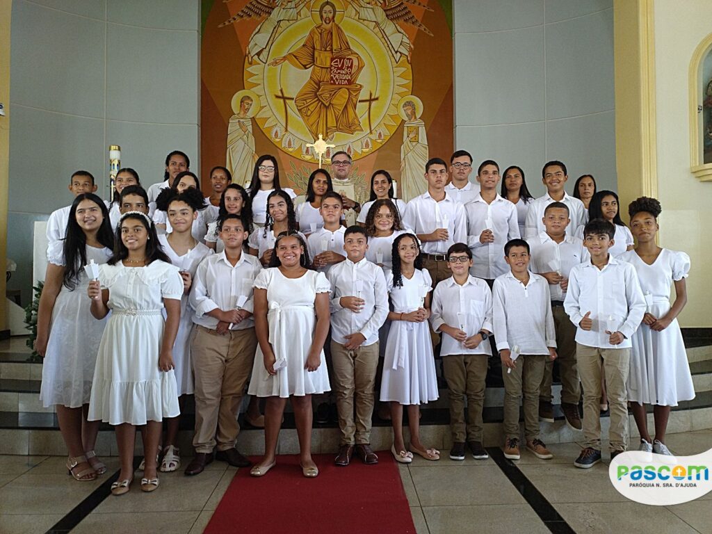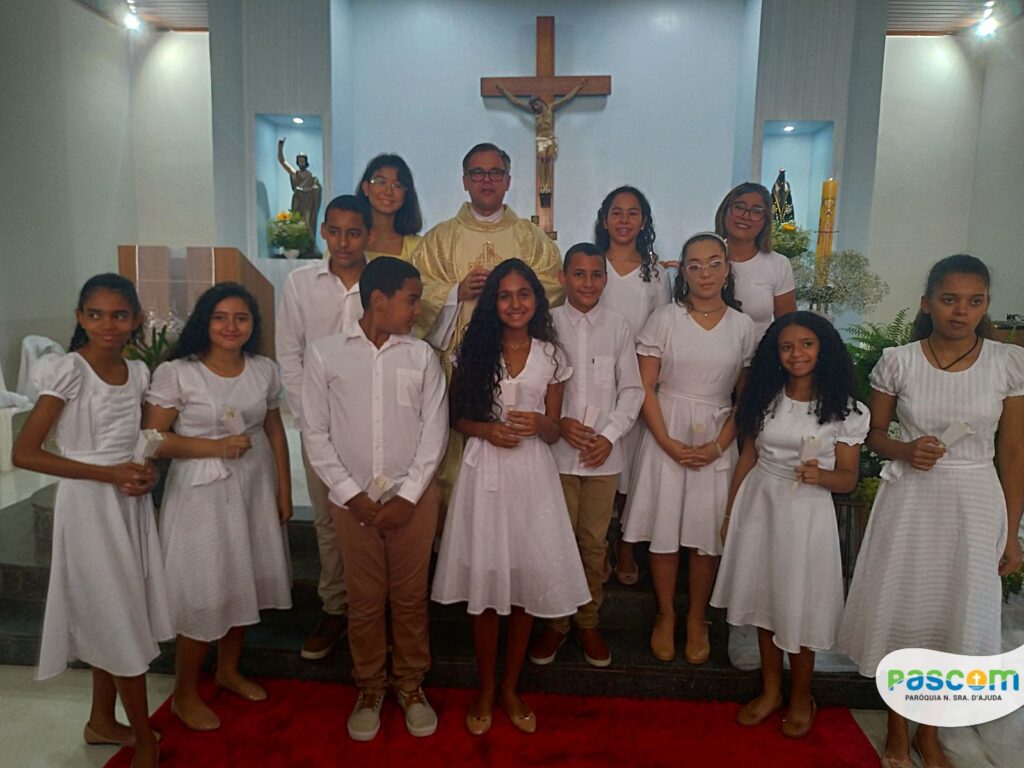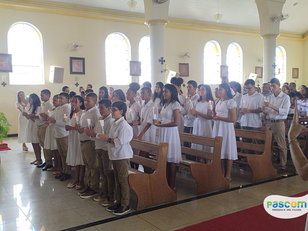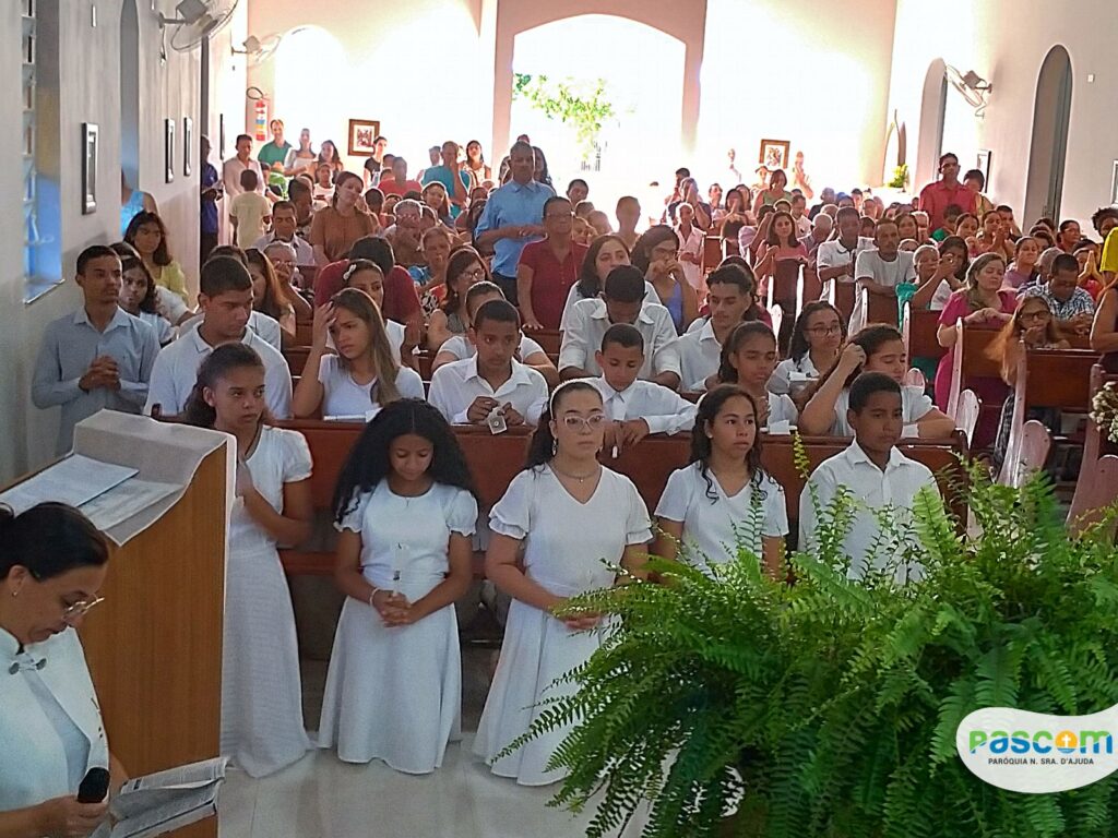 Neste domingo de Pascoa, dia 09, durante a Santa Missa nas Comunidades São João Batista (07h), Matriz (09h) e São Judas Tadeu (17h), presidida pelo Padre Vagner Batista de Melo cerca de 50 catequizando (contado crianças, Jovens e Adultos) receberam o Sacramento da Primeira Eucaristia.