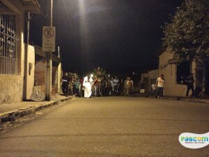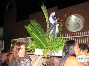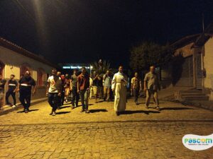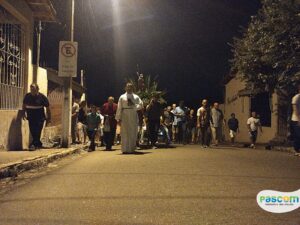 Na quarta-feira santa, dia 05 de abril, aconteceu, às 18h30, a Procissão do Encontro, que é a uma celebração litúrgica de muita piedade, que o povo católico muito aprecia durante a Semana Santa, um momento que marca o encontro da Virgem Maria com o Seu Filho Divino, carregando a Cruz no caminho do Calvário, pelas ruas de Jerusalém, depois de ser flagelado, coroado de espinhos e condenado à morte por Pilatos. É um momento em que meditamos o doloroso encontro da Virgem Maria com Jesus; é um momento de profunda reflexão sobre as dores da Mãe de Jesus, desde o Seu nascimento até a Sua morte na Cruz. Jesus sofreu a Paixão; a Virgem sofreu a compaixão por nós.