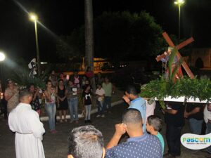 Este ano os homens, com a imagem de Nosso Senhor dos Passos, saíram da Igreja da Comunidade São João Batista, já as mulheres, com a imagem de Nossa Senhora das Dores, saíram da Igreja da Comunidade São José Operário. Na Igreja Matriz acontece, então, o doloroso encontro entre a Mãe e o Filho. O seminarista Tharles Brandão encerra, fazendo uma reflexão, que chama os fiéis à conversão e à penitência.
