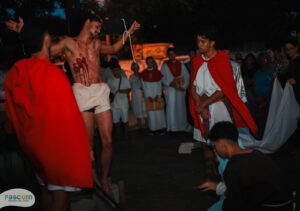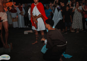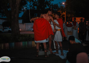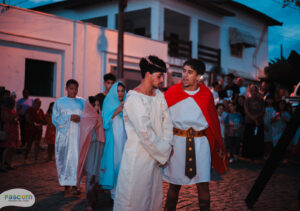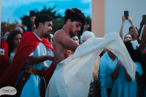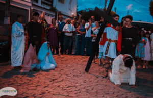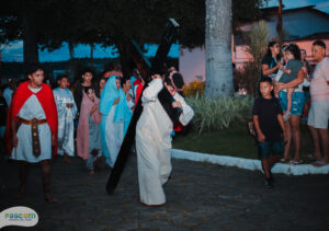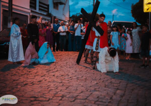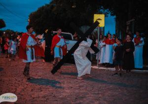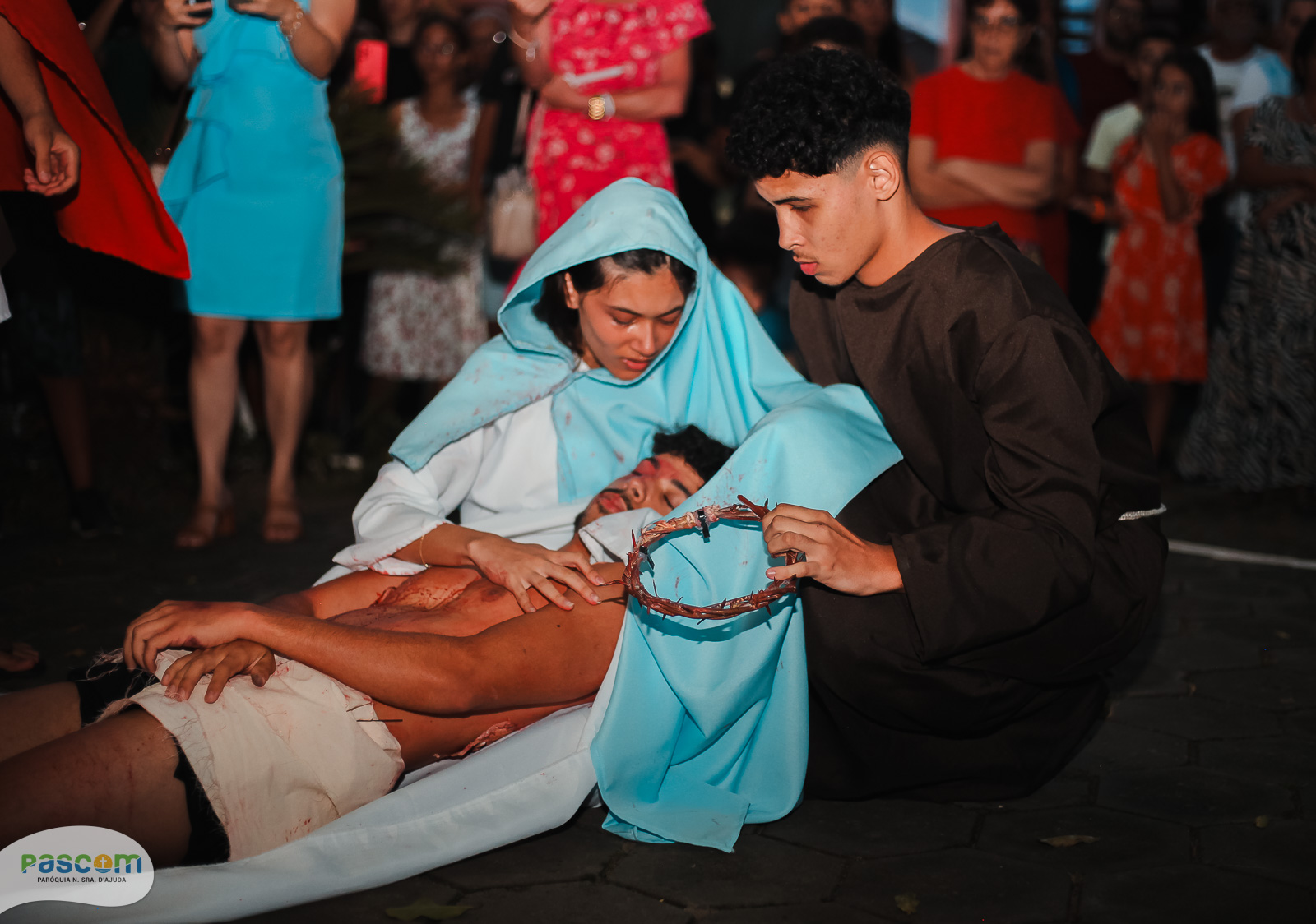 Já às 15h, ocorreu a celebração da Paixão e Morte de Nosso Senhor Jesus Cristo. Em seguida, a comunidade acompanhou a encenação e a procissão do Senhor Morto, em um momento de grande emoção e fé.
