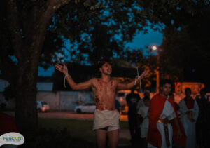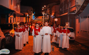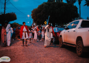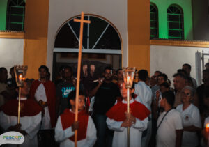 Com a procissão iniciando as 19h, homens saindo da comunidade São Judas Tadeu e mulheres saindo da comunidade São João Batista, ao chegar na Igreja Matriz teve a reza do Oficio das Trevas.
