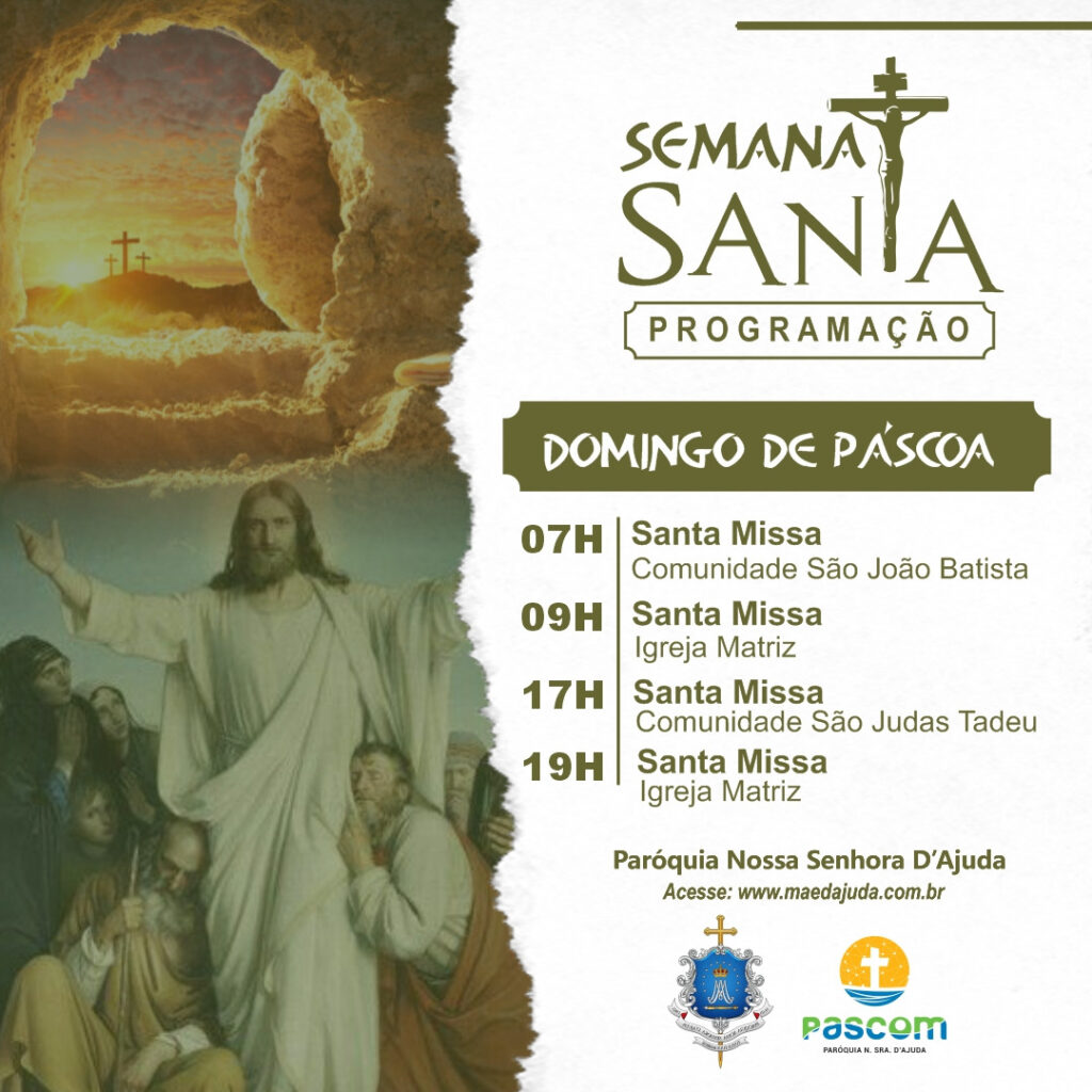 Encerrando a programação, o Domingo de Páscoa foi celebrado com grande alegria, com missas realizadas nos seguintes horários: