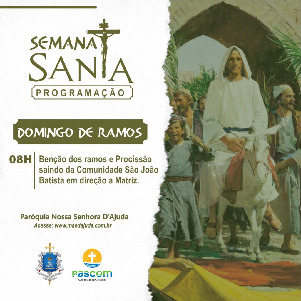 A abertura da Semana Santa aconteceu com o Domingo de Ramos, reunindo os fiéis às 08h, com a bênção dos ramos e procissão saindo da Comunidade São João Batista em direção à Igreja Matriz.