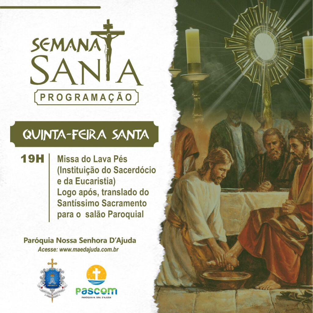 Na Quinta-feira Santa celebramos a instituição da Eucaristia e do sacerdócio. O gesto do Lava-Pés nos recorda o ensinamento de Jesus sobre o serviço:
