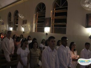 No Sábado Santo, às 19h, a comunidade se reuniu para a Vigília Pascal, iniciada na Praça da Matriz com a bênção do fogo novo.