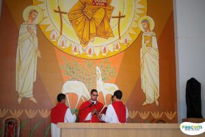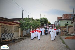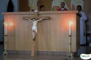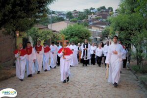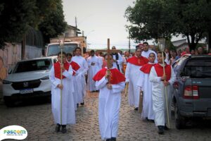A Sexta-feira Santa é um dia de profunda reverência e adoração, pois neste dia relembramos a crucificação de Jesus Cristo e sua morte no Calvário, refletindo sobre o significado do sacrifício e o amor divino. Padre Waldemir nos trouxe uma riquíssima homilia para entendermos aquilo que acontece no Altar da Cruz, nos convidando assim a olharmos para o alto desta Cruz e enxergamos que dela emana vida, emana a carne que vai nos alimentar, o sangue que será a eterna bebida para nós. É nesta Cruz que Jesus se oferece de uma vez por todas em sacrifício para a humanidade, onde emana para nós do lado aberto do Cristo a salvação. E logo após a celebração, fiéis em procissão foram rumo ao Projeto Santuário Jesus Misericordioso para o Sermão da Paixão.