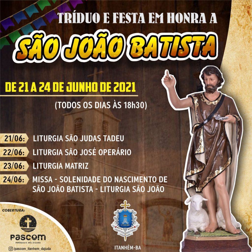 Nos dias 21 a 24 de Junho de 2021 a Comunidade São João Batista realizará o Tríduo e Festa em honra ao seu Padroeiro.
