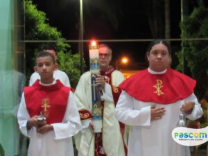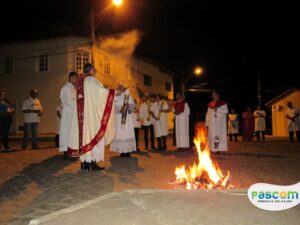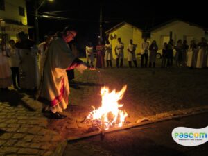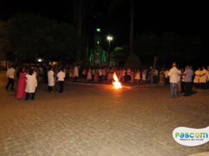 No sábado, dia 08 de abril, na Igreja Matriz da Paróquia Nossa Senhora D’Ajuda, aconteceu a celebração da Vigília Pascom e a bênção do fogo. Celebrada pelo Padre Vagner Batista de Melo, dando inicio as 19h na Praça da Matriz.